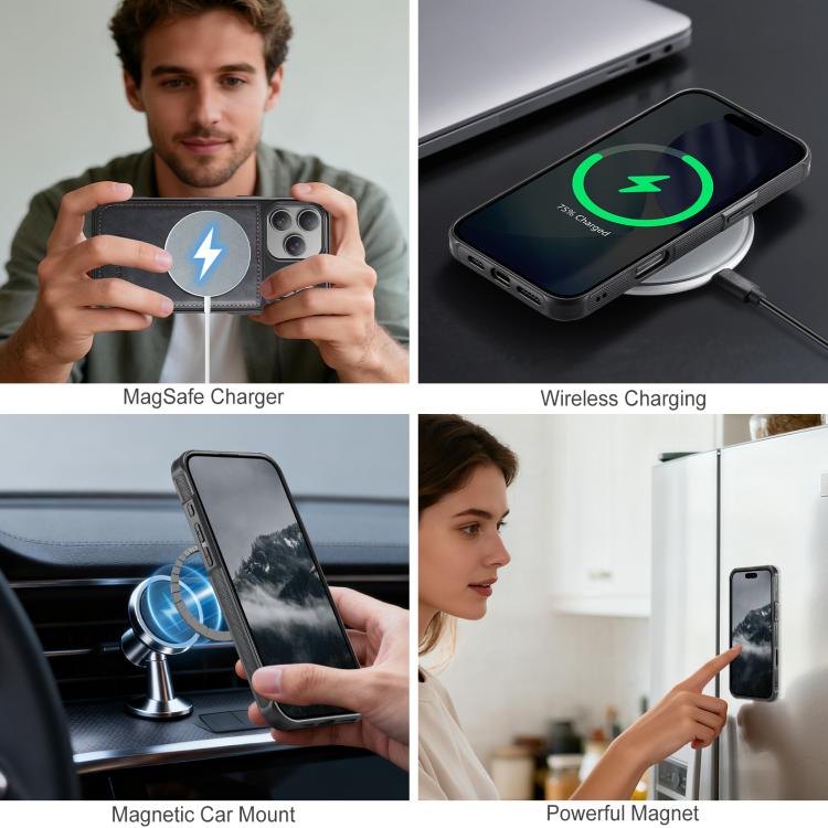 Funda magnética MagSafe AutSpace A05 2 en 1 con textura de piel de becerro retro para iPhone 17 Pro (negra)