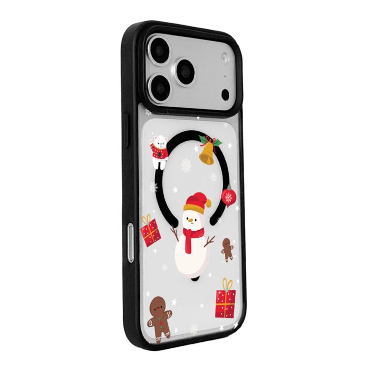 Funda magnética resistente con borde negro pintado para iPhone 17 Pro, serie navideña (Navidad nevada)
