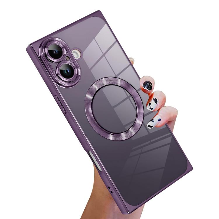 Funda MagSafe de TPU con patrón de CD electrochapado cuadrado en ángulo recto para iPhone 17 (morado oscuro)