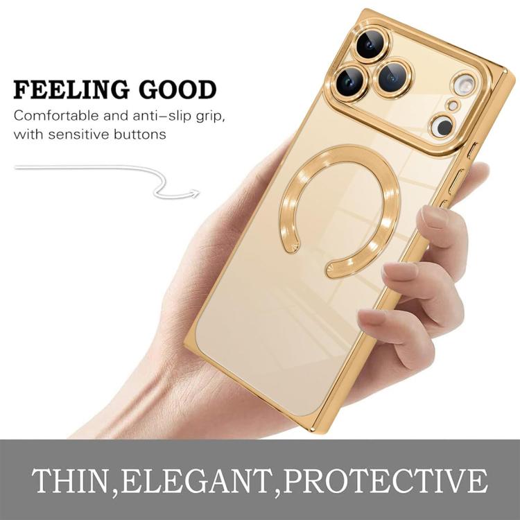 Funda MagSafe de TPU con patrón de CD electrochapado cuadrado en ángulo recto para iPhone 17 Pro (plateada)
