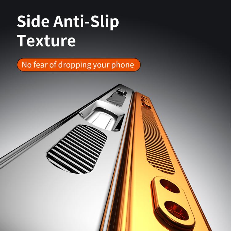 Funda MagSafe electrochapada para iPhone Air con soporte giratorio de 360 grados y cubierta para lente (naranja).