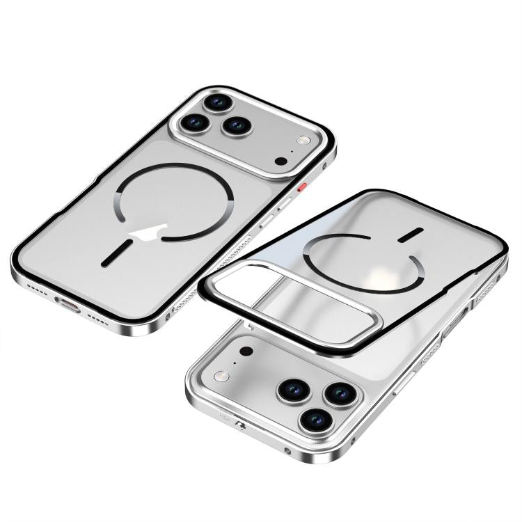 Funda MagSafe esmerilada para iPhone 17 Pro con cierre a presión de un solo lado y marco metálico (plateada)