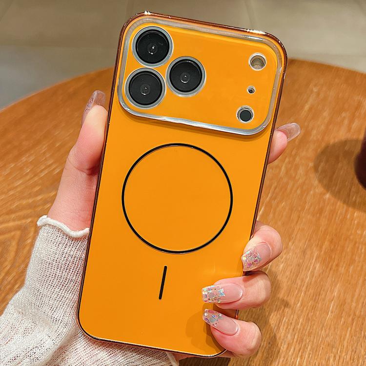 Funda MagSafe para iPhone 17 Pro Max con marco de cámara con orificio grande y anillo fino (naranja)