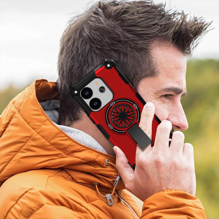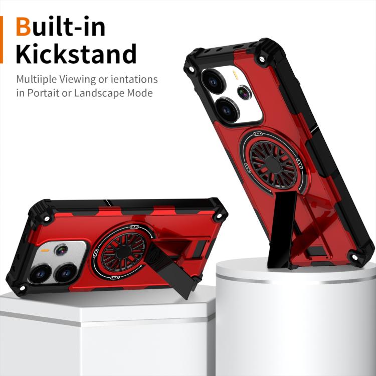 Funda MagSafe para Redmi Note 14 4G de 163,25 mm con soporte metálico y eje a prueba de golpes (roja)