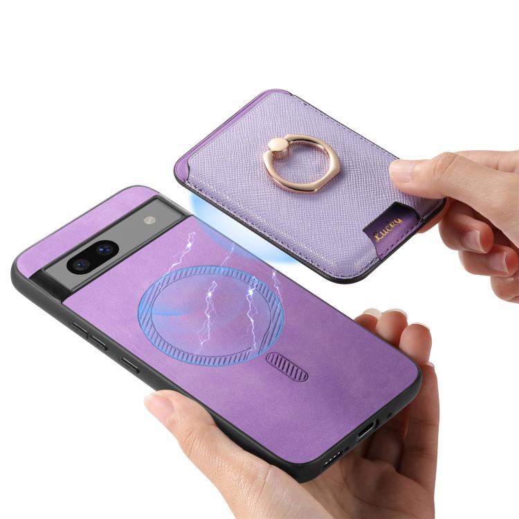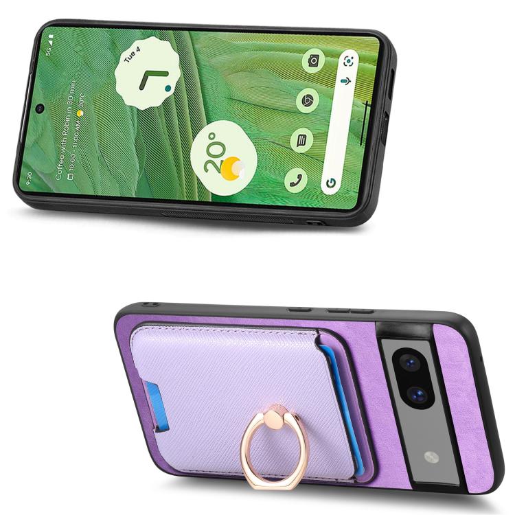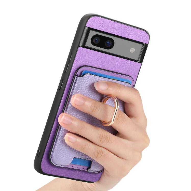 Funda para Google Pixel 7 con Ranuras para Tarjetas y Anillo de Cuero Retro Cruzado (Morado)