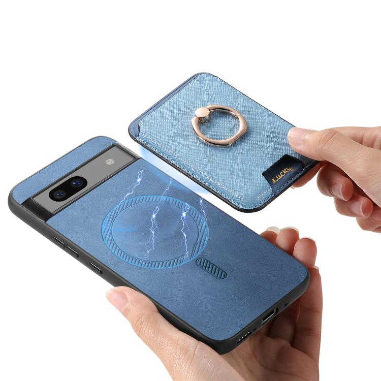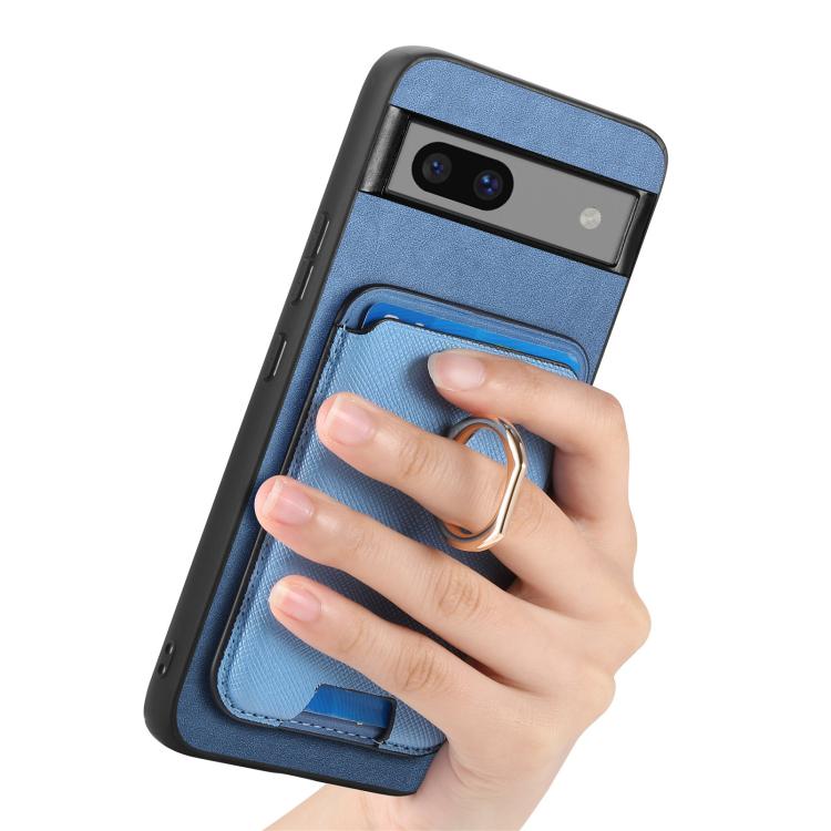 Funda para Google Pixel 7A con Ranuras para Tarjetas y Anillo de Cuero Diseño Retro (Azul)