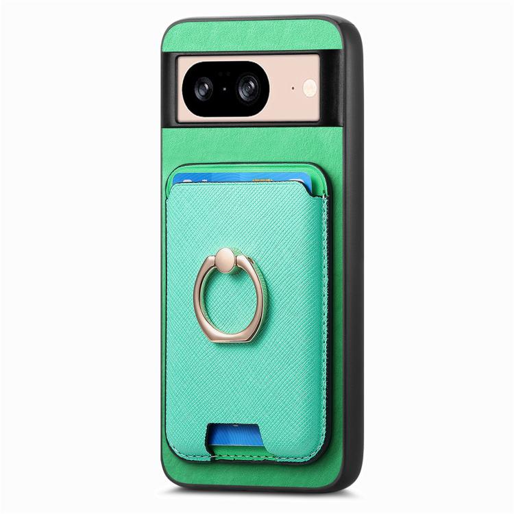 Funda para Google Pixel 8 con Ranuras para Tarjetas y Anillo de Cuero (Verde)