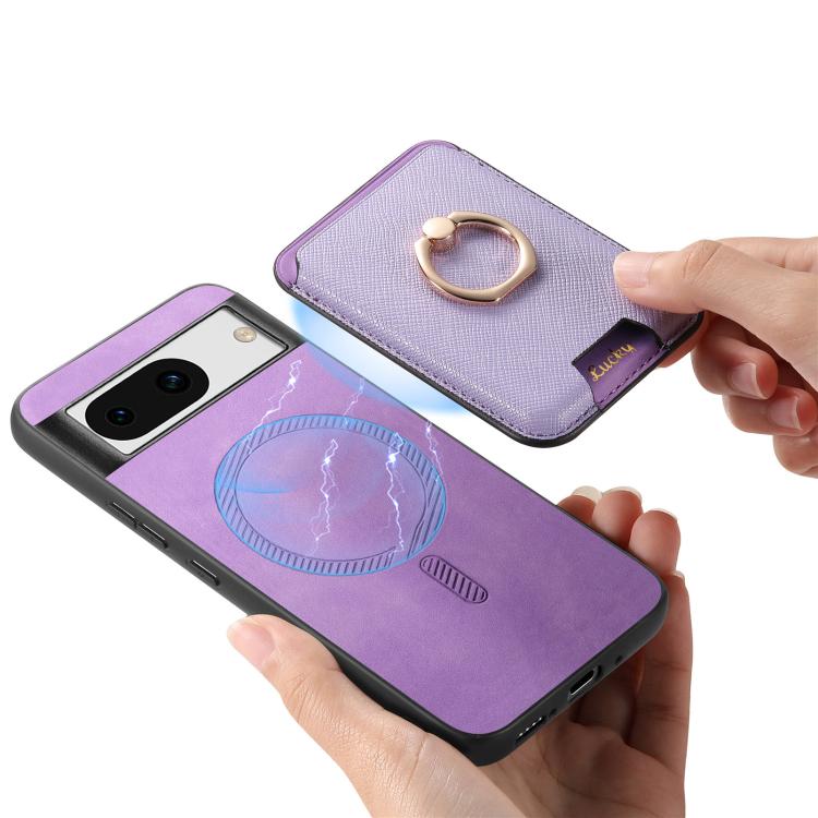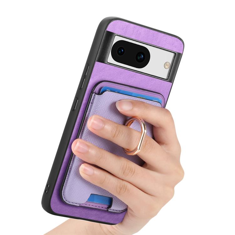 Funda para Google Pixel 8A con Ranuras para Tarjetas y Anillo de Cuero (Morado)