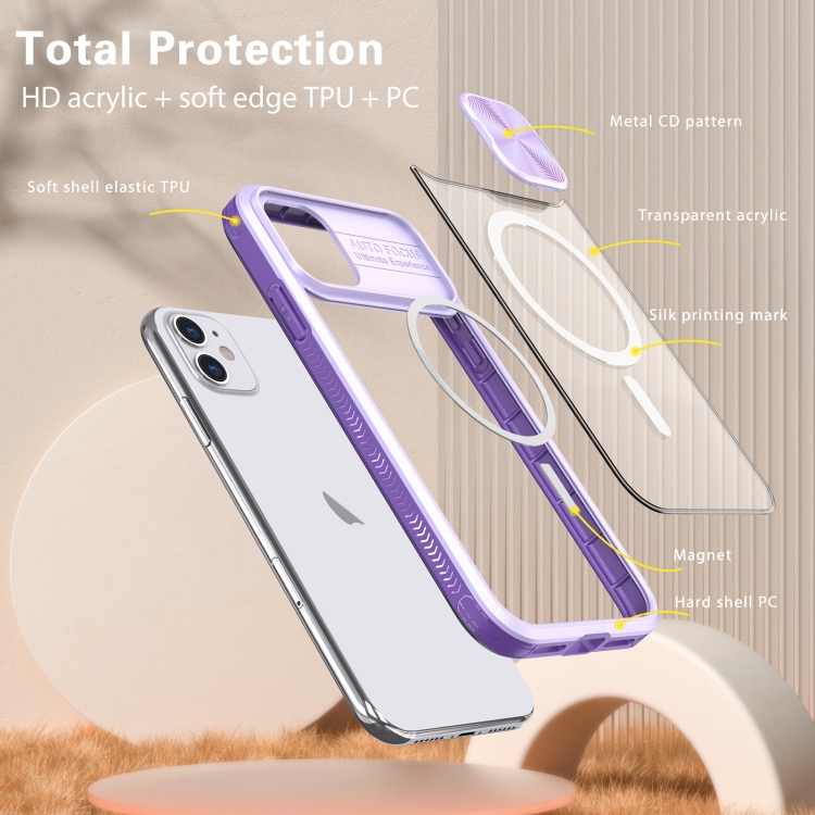 Funda para iPhone 11 con Cobertura Total Cubierta Deslizante Lente Magsafe (Morado)
