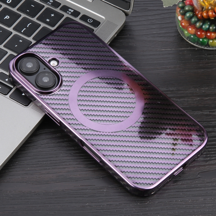 Funda para iPhone 16 6D con Revestimiento de Fibra de Carbono Transparente y Protección Magsafe para PC (Morado Aurora)