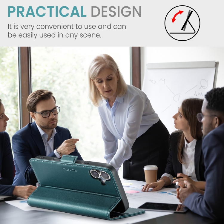 Funda para iPhone 16 Caseme 023 con Hebilla de Mariposa Textura de Lichi Antirrobo Rfid (Verde)