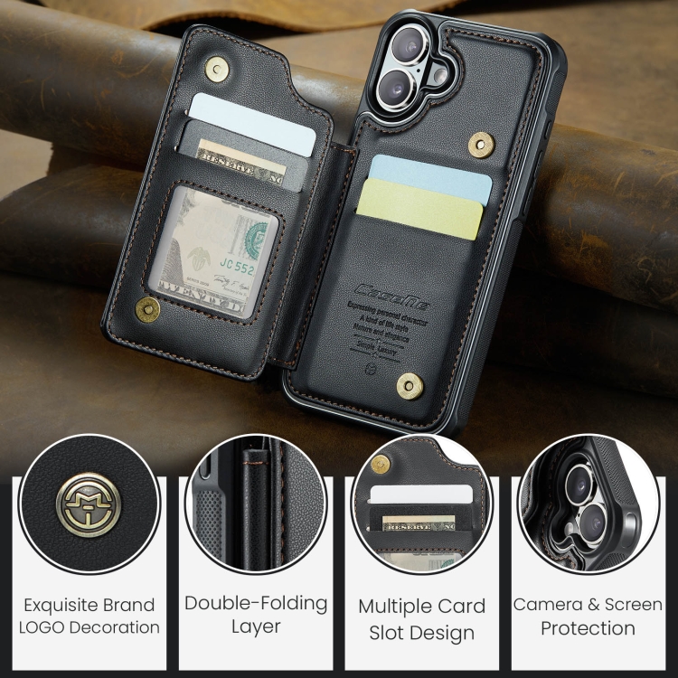 Funda para iPhone 16 Caseme C22 con Ranuras para Tarjetas y Protección Antirrobo Rfid (Negra)