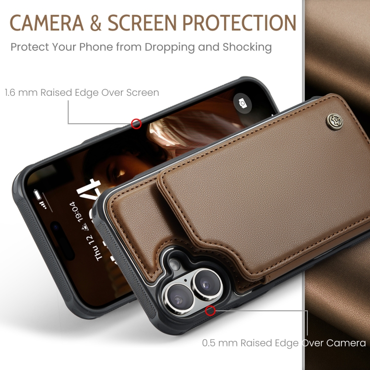 Funda para iPhone 16 Caseme C22 con Ranuras para Tarjetas y Rfid Antirrobo (Marrón)
