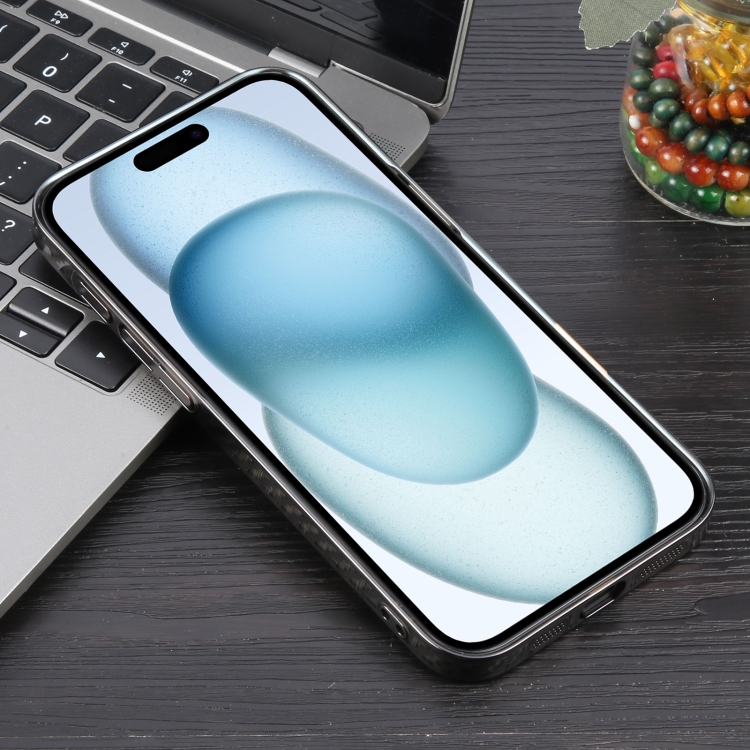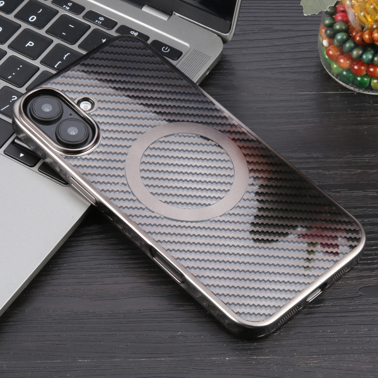 Funda para iPhone 16 Carcasa PC Fibra de Carbono Transparente Revestimiento Magsafe 6D (Gris Titanio)