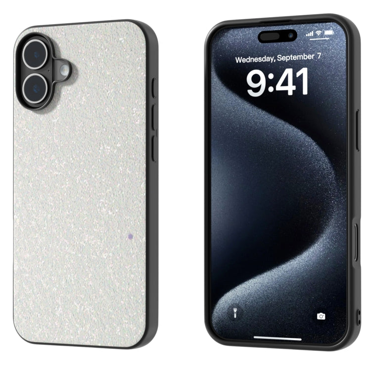 Funda para iPhone 16 con Marco Negro y Purpurina de Colores (Blanca)