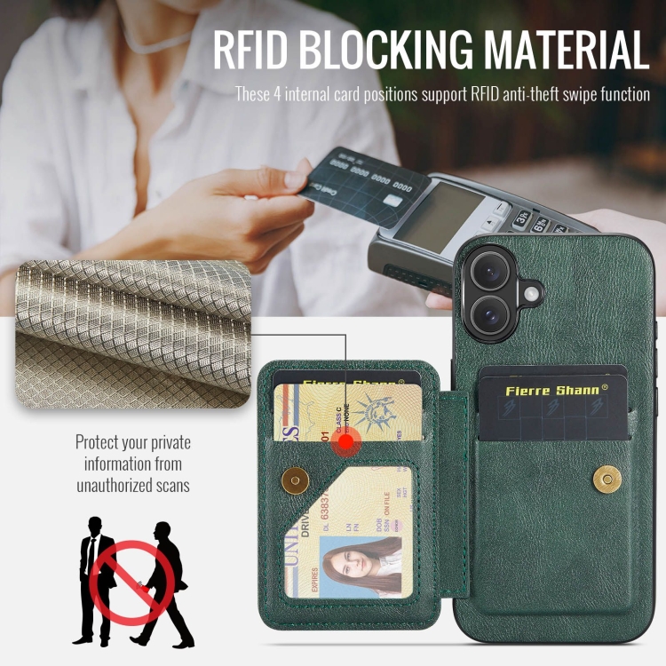 Funda para iPhone 16 Fierre Shann Piel de Vaca con Cera de Aceite y Tarjetero (Verde)