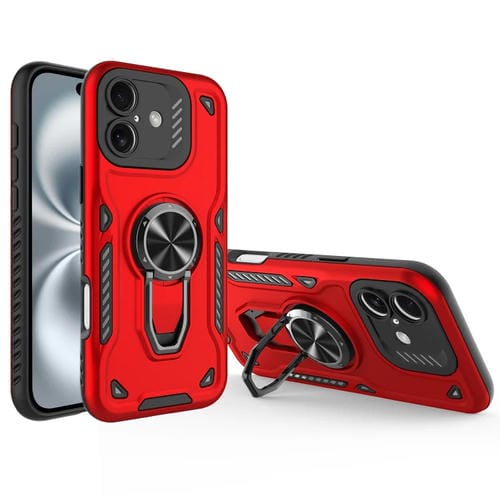 Funda para iPhone 16 Plus con Soporte Giratorio de Metal y Carcasa Magnética de TPU y PC (Rojo)