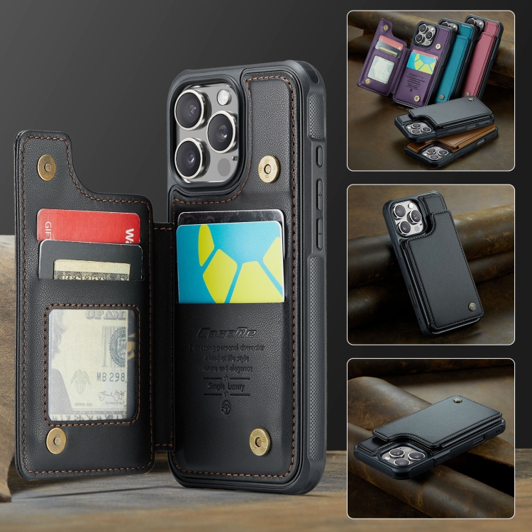 Funda para iPhone 16 Pro Caseme C22 con Ranuras para Tarjetas y Protección Antirrobo Rfid (Negra)