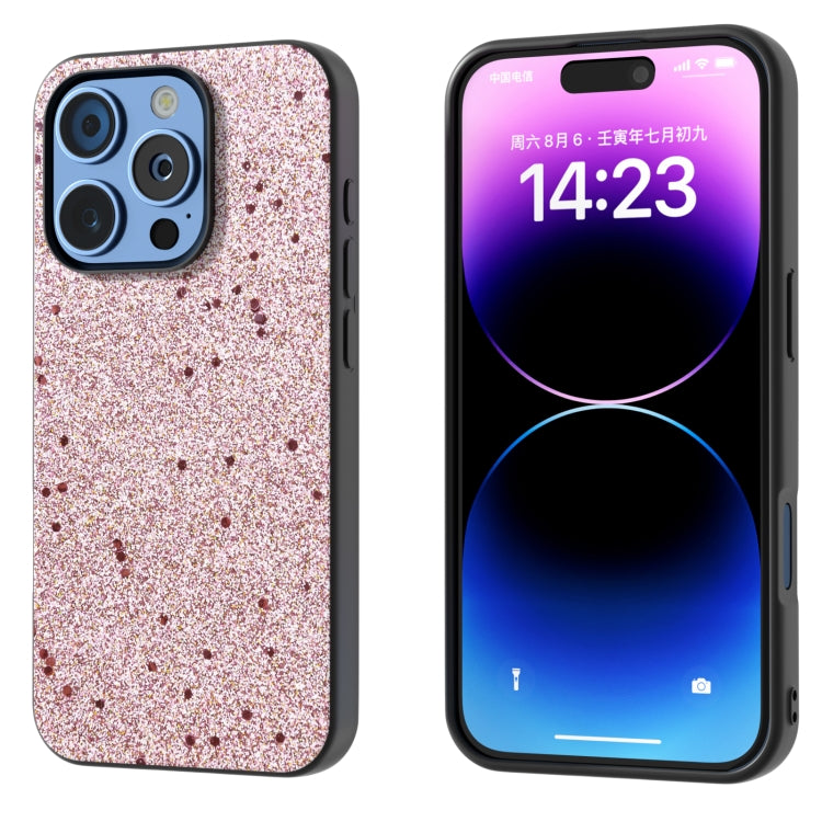 Funda para iPhone 16 Pro Max Marco Negro Purpurina Prueba de Golpes (Dorado y Rosa)