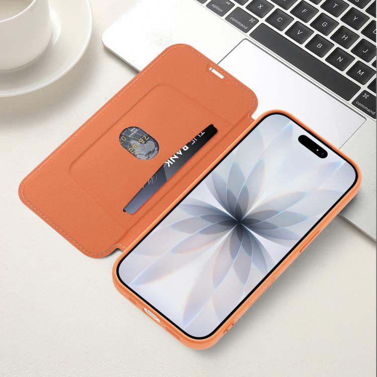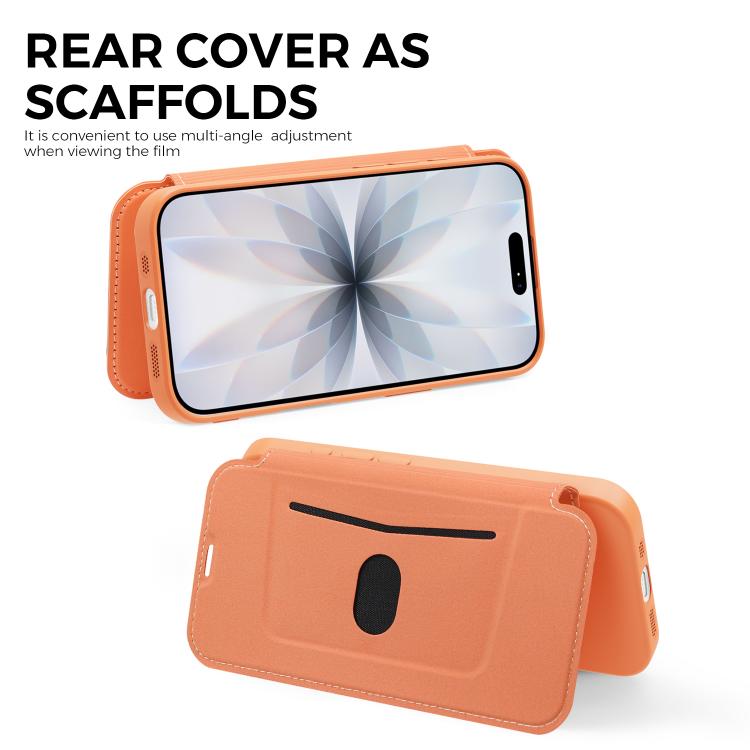 Funda para iPhone 17 con tacto de piel sintética tipo Liquid Skin y ranuras para tarjetas (naranja)
