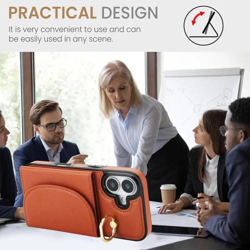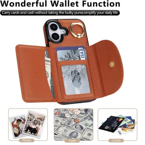 Funda para iPhone 17 con tarjetero y anillo, tacto suave (marrón)