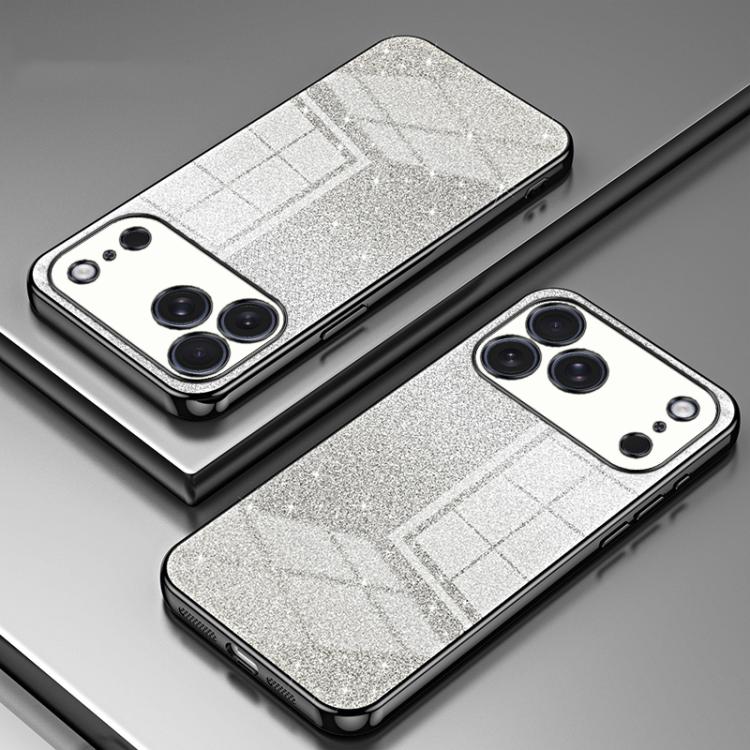 Funda para iPhone 17 Pro con purpurina degradada en polvo galvanizado (negra)