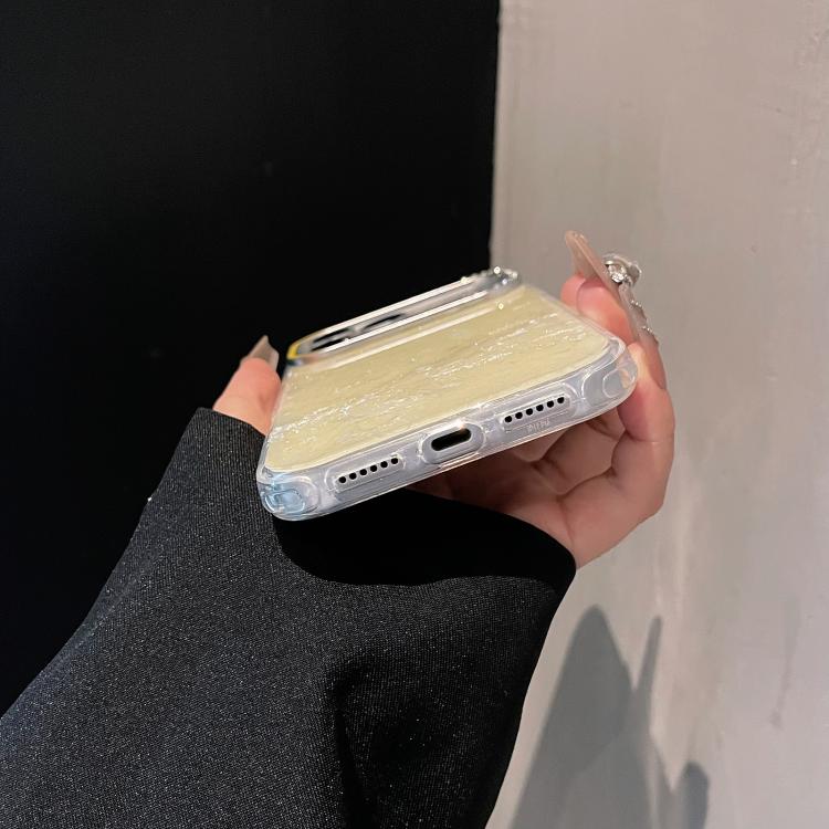 Funda para iPhone 17 Pro Max con diseño dorado y colorido, fabricada en TPU+IMD (blanca).