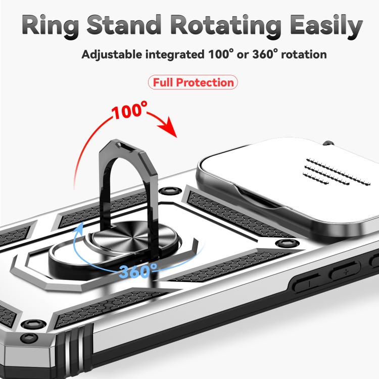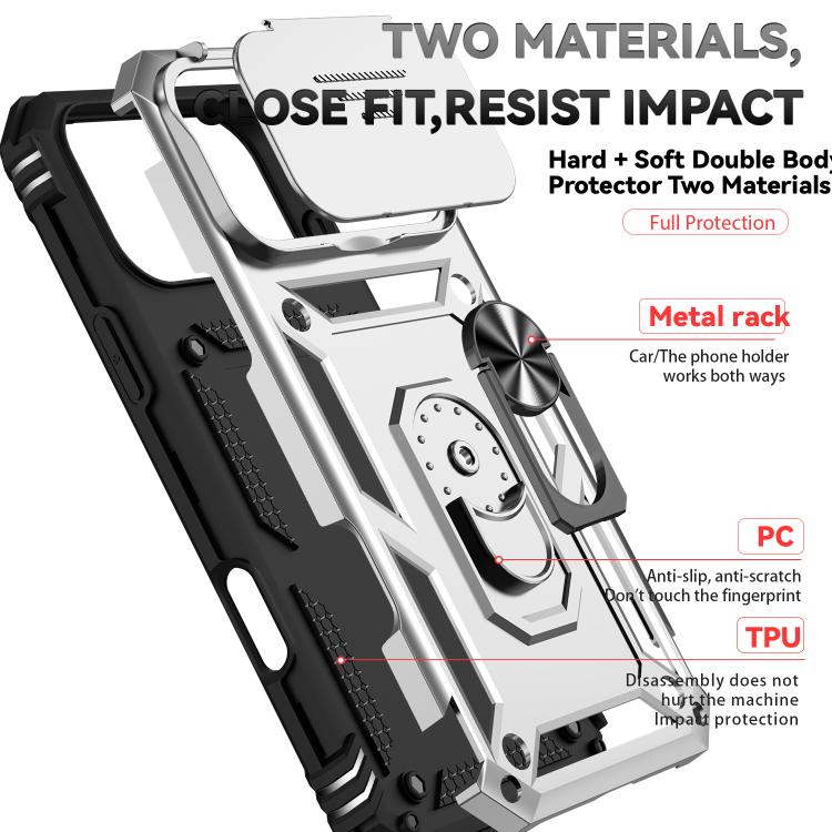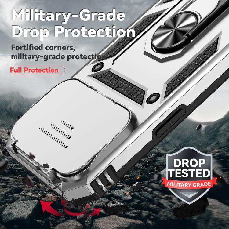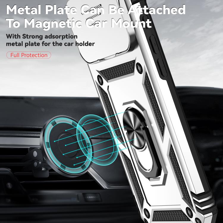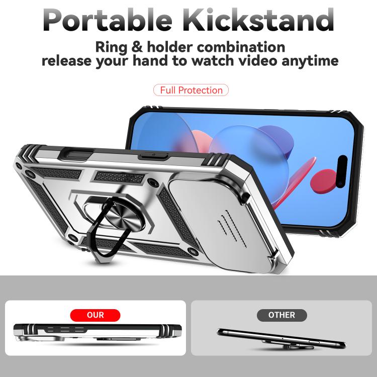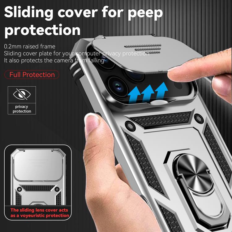 Funda para iPhone 17 Pro Max con soporte deslizante tipo cámara (plateada)