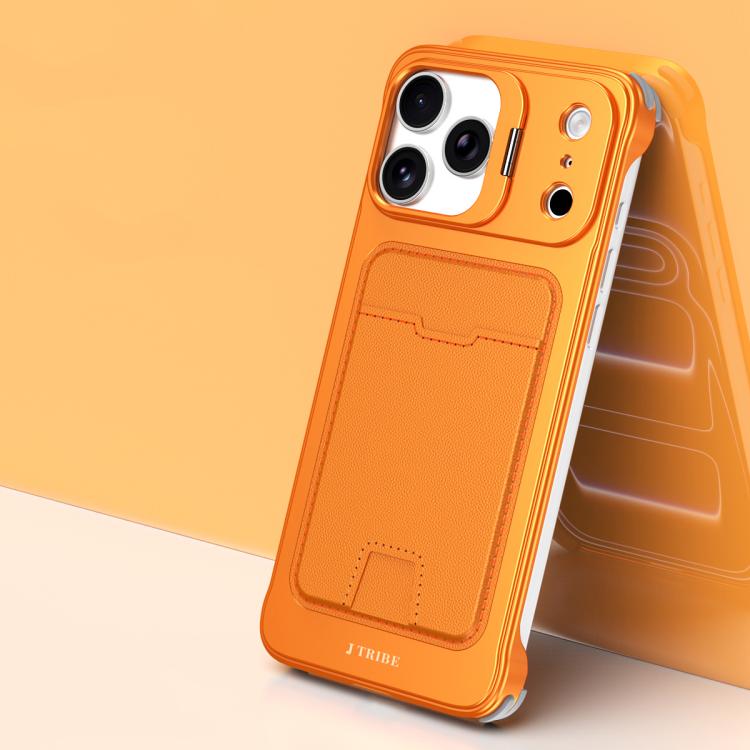 Funda para iPhone 17 Pro Max J TRIBE de metal sin marco con ranura para tarjeta y soporte para lente (naranja)
