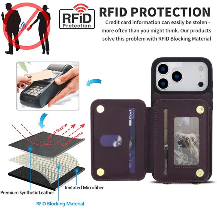 Funda para iPhone 17 Pro Max YM006 con cremallera y doble cordón (morado oscuro)