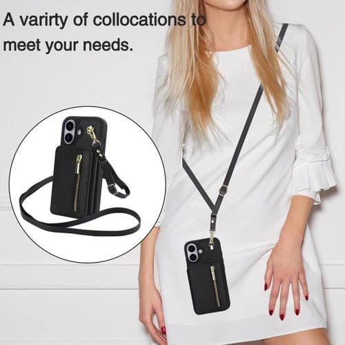 Funda para iPhone 17 YM006 con cremallera y doble cordón (negra)