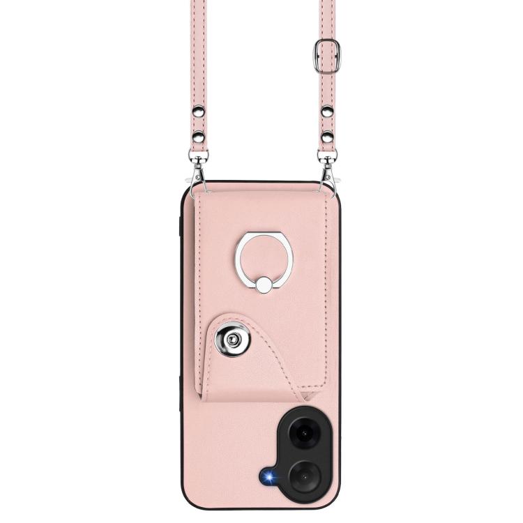 Funda para Redmi A5 4G (171,7 mm) / Poco C71 con tarjetero y anilla, con cordón largo (rosa)