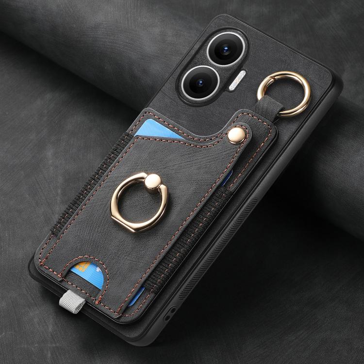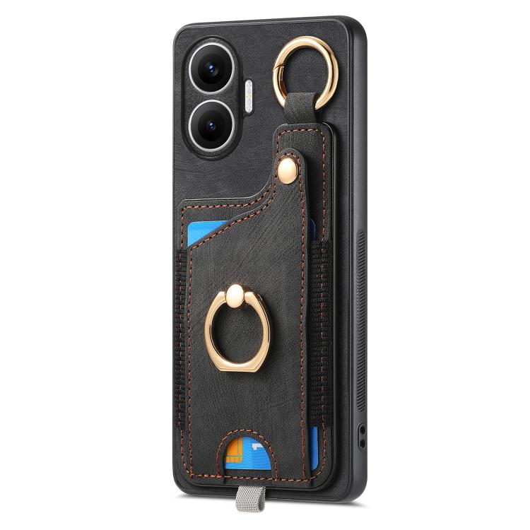 Funda para Redmi Turbo 4 Pro con diseño retro de piel sintética, con anillo y asa para colgar (negra)