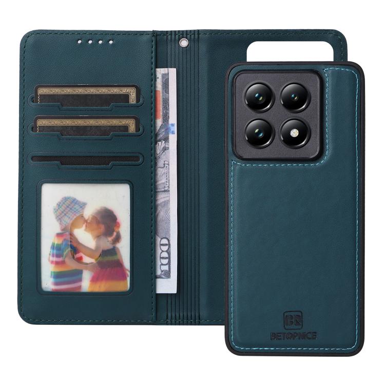 Funda para Teléfono 2 En 1 Desmontable de Piel Sintética de Imitación Betopnice Bn-005 para Xiaomi 14T Pro (Azul)