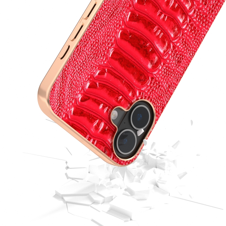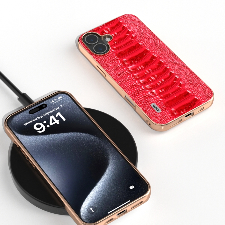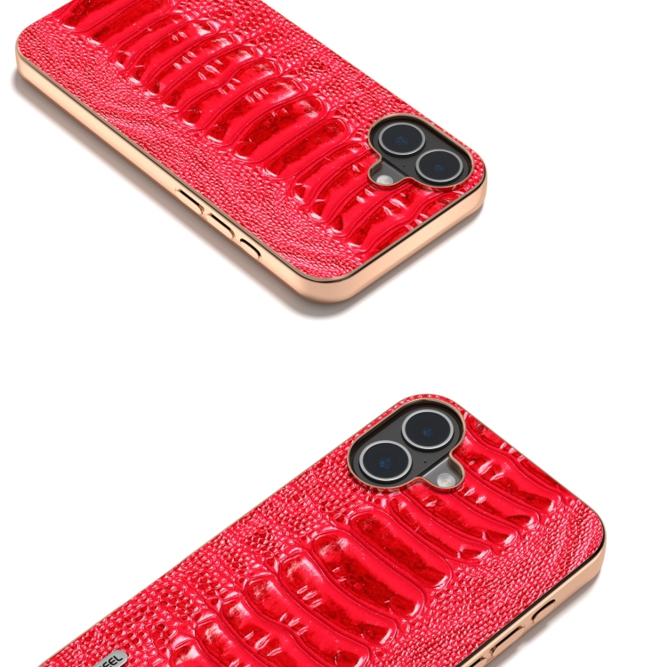 Funda para Teléfono Abeel Serie Weilai Cuero Genuino Marco Galvanizado iPhone 16 (Rojo)