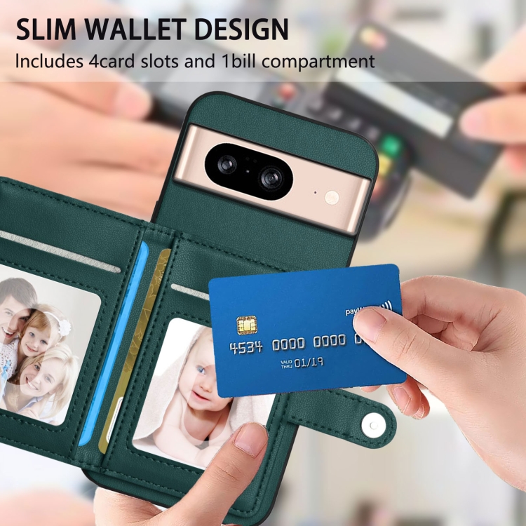 Funda Antirrobo para Google Pixel 8 con Botón y Tarjetero RFID (Verde)