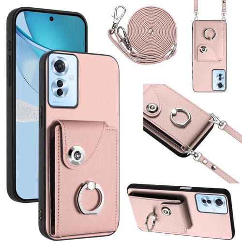 Funda para Teléfono con Aro y TaRJetero para Oppo F25 Pro 5G, Diseño Indio, con Cordón Largo (Rosa)
