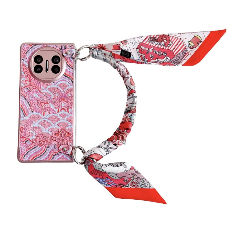 Funda para Teléfono Huawei Mate X3/X5 con Cobertura Total, Bordado Nubes, Bufanda y Pulsera (Rojo)