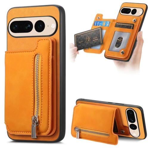 Funda para Teléfono con Cremallera Magsafe Retro para Google Pixel 7 Pro (Amarilla)