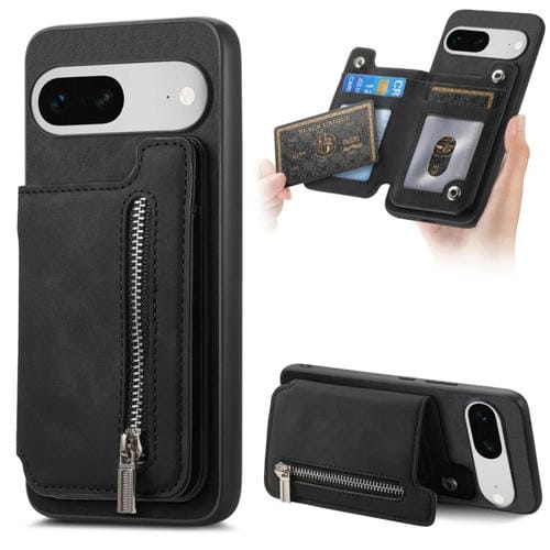 Funda para Teléfono con Cremallera Magsafe Retro para Google Pixel 7 Cartera con Tarjetero (Negro)