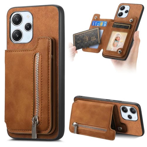 Funda para Teléfono con Cremallera Magsafe Retro para Redmi 12 / Note 12R / Poco M6 Pro 5G (Marrón)