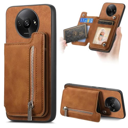 Funda para Teléfono con Cremallera Magsafe Retro para Redmi A3, TaRJetero, Cartera (Marrón)