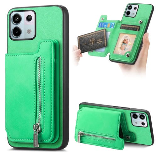 Funda para Teléfono con Cremallera Magsafe Retro para Redmi Note 13 Pro 5G/Poco X6 5G (Verde)