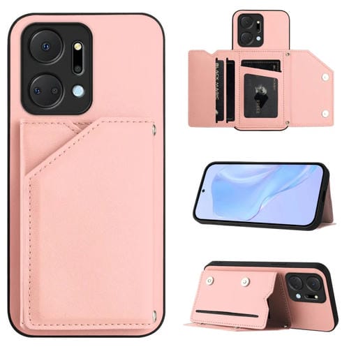 Funda para Teléfono Honor X7A Play7T con 4 Ranuras para Tarjetas y Correa para Muñeca (Rosa)