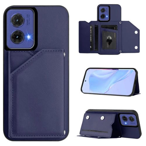 Funda para Motorola S50 Neo Skin Feel con 4 Ranuras para Tarjetas y Correa para Muñeca (Azul)