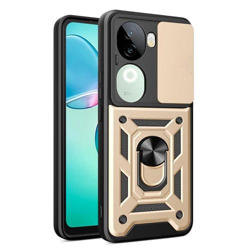 Funda para Teléfono con Diseño de Cubierta Deslizante para Cámara Global para Vivo Iqoo Z9S 5G, TPU + PC (Dorada)