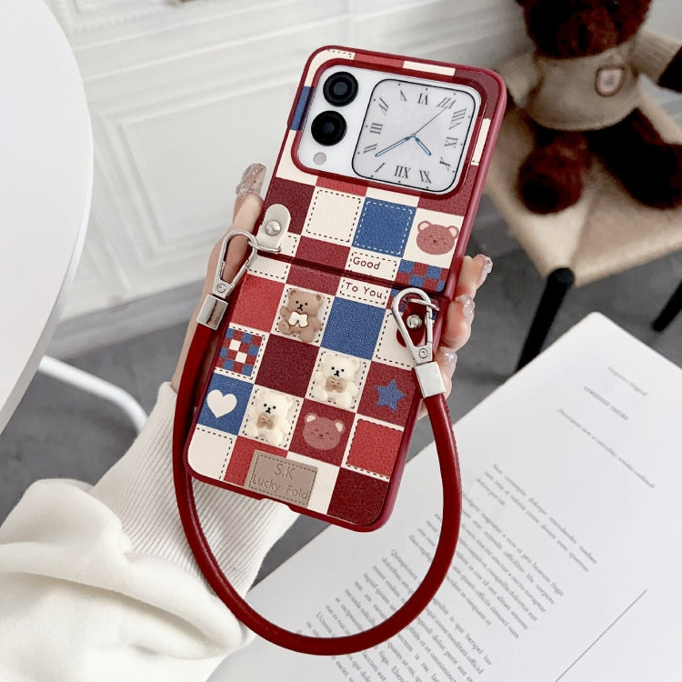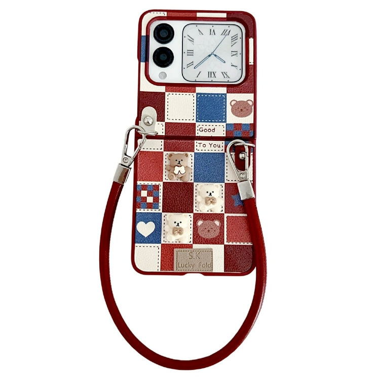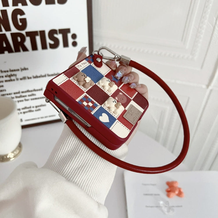 Funda para Huawei Nova Flip con Diseño de Osito Enrejado y Correa para Muñeca (Rojo)