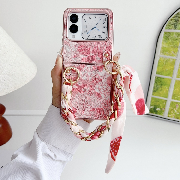 Funda para Teléfono Huawei Nova Flip Cobertura Total Bordado Diy con Bufanda y Pulsera (Rosa)
