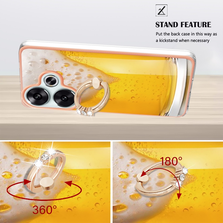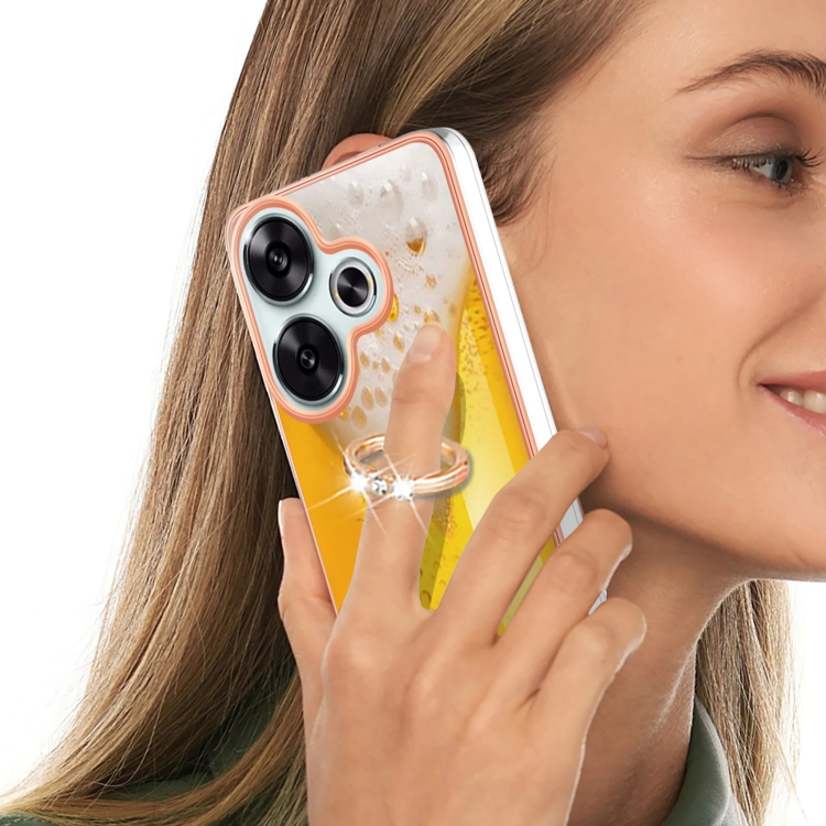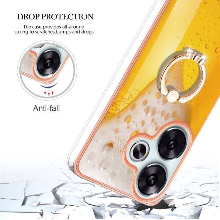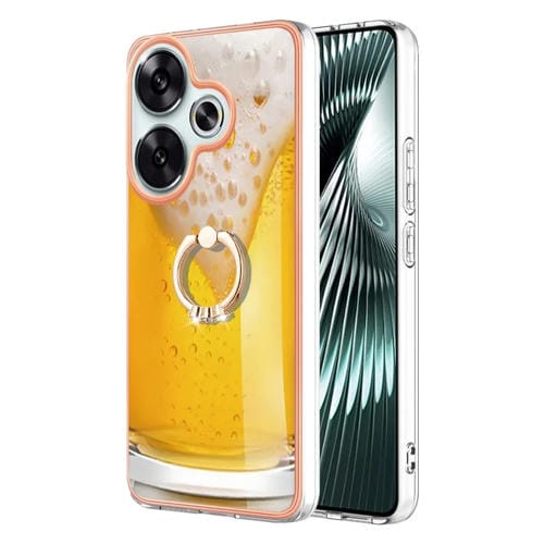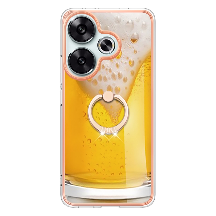 Funda para Teléfono con Galvanoplastia Imd de Doble Cara para Xiaomi Poco F6 5G con Soporte para Anillo (Cerveza de Barril)