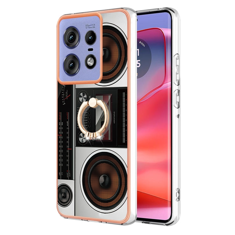 Funda para Motorola Edge 50 Pro con Galvanoplastia Imd Doble Cara y Soporte para Anillo (Radio Retro)